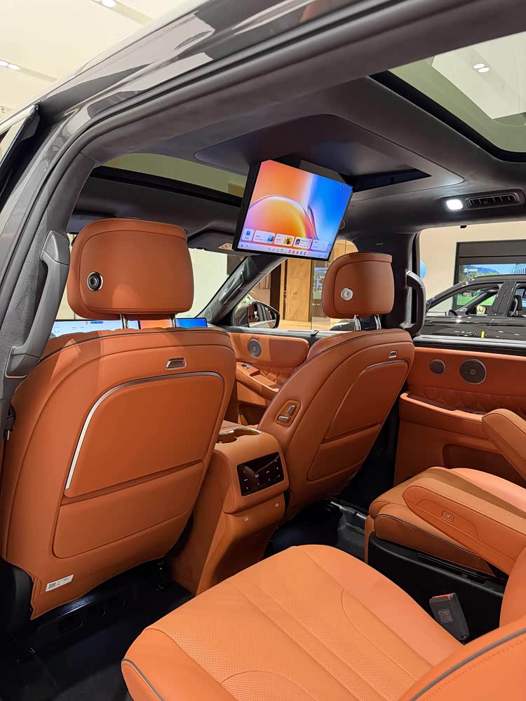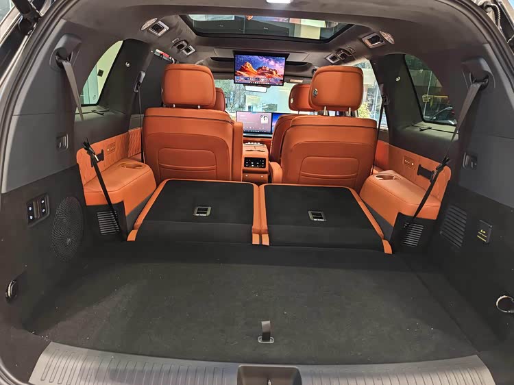 但我真正想表达的不是它的大小,而是它既大又不空洞。与某些大型SUV相比,这款车的车身设计相当宽敞,一进门就能看到第三排有两个可折叠的小板凳,而第二排座椅也并没有特别的配置,因此花费在了额外的费用上。然而,V9X的实车设计使我认为,这辆车既有内部功能又有外部维修。在其第二排的右边,你会看到一个配备电动腿托的零重力座椅,该座椅提供22点的通风加热和按摩功能。此外,它的头部还配有一个21.4英寸的4K吸顶娱乐屏幕,以及一个可折叠的小桌板。第三排座椅配备了台式的大型扶手和绑带杯架,座椅还支持电调加热和倒放功能,而一二三排座椅都装有遮阳帘。坦率地说,我见过的一些百万级别的车辆,并不一定都能提供如此完备的三排配置。