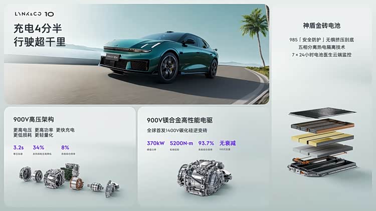 领克汽车在4月7日正式推出了其首款中大型纯电运动轿车 领克10(参数|询价)和高性能版本领克10+,并同步发布了最新一代的三电技术架构。