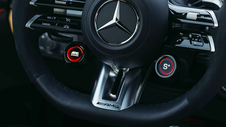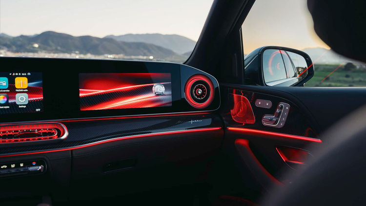 同时它还加上了AMG专属格栅、AMG Line内饰套件、四条排气管、车尾有专属的AMG标志、AMG方向盘、头枕有AMG标志都透露出它的“AMG血统”。在引擎部分还加上碳纤维材质,同时它新增的特别配色,包括Manufaktur Patagonia Red Metallic和Manufaktur Cirrus Silver Magno,在方向盘还有S+模式,这个就是Sport模式,可以带来瞬间的狂暴动力、同时将悬架变紧让车身更低,将引擎真正的动力展现出来!