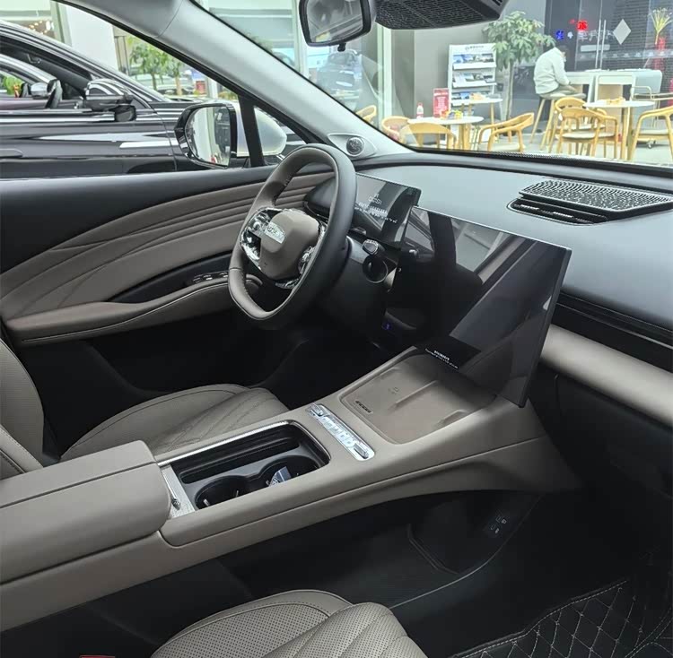 内饰方面,我们可以看到新车采用的是非常干练的设计,新车采用了一个方形的方向盘,中间的造型也比较时尚。它还采用了悬浮效果的大屏,还有细长的空调出风口的布局,中控台有非常平整的造型。新车还有无线充电区域,它的整个内饰看起来是非常不错的。动力方面,新车搭载的是1.6T发动机,最大输出功率为147kW,峰值扭矩290牛·米,采用7速双离合变速箱。