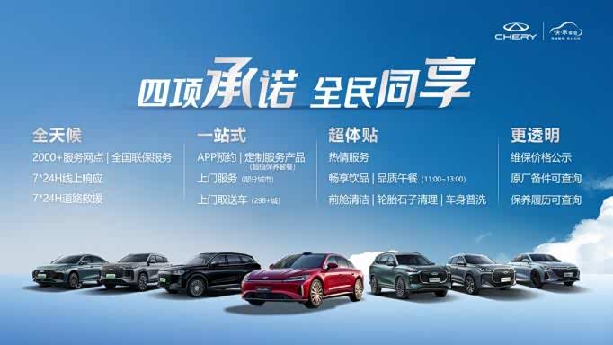 依托全国2000+服务网络的庞大体量,奇瑞向用户兑现了全天候、一站式、超体贴、更透明的承诺。