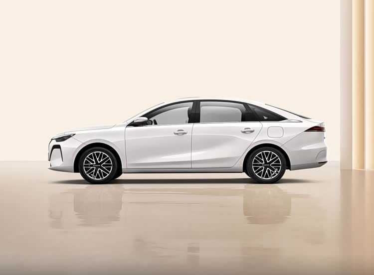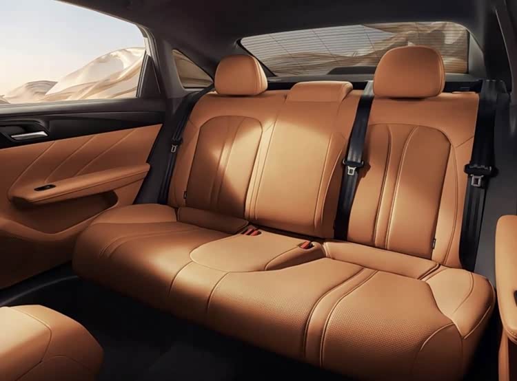 车身侧面线条流畅舒展,一条凌厉的腰线从前灯组贯穿至尾灯组,搭配密辐式铝合金轮毂,勾勒出修长优雅的车身姿态,侧窗底部的镀铬装饰点缀,进一步提升了整车的精致感。车尾采用贯穿式LED尾灯组,与前脸贯穿灯组形成呼应,搭配微微上翘的小鸭尾设计,既简洁大气,又增添了几分运动气息。车身尺寸为4767/1828/1498mm,轴距2755mm,处于同级燃油轿车上游水平,短悬长轴的设计最大化拓展车内空间,为驾乘人员提供充裕的头部与腿部空间。