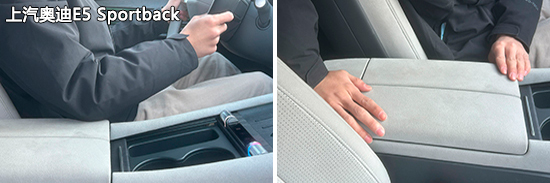 前排中央扶手方面,四款车型均采用软性材料包裹,触感舒适。其中,上汽奥迪E5 Sportback表面采用翻毛材质,防滑效果不错。虽然扶手都不支持前后移动或角度调节,但是得益于适中的尺寸以及合理的位置,正常坐姿下,还是能够为驾驶员手肘提供有效支撑。