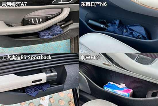 车内储物空间方面,四款车型都未配备眼镜盒,所以墨镜没有合适的地方放置。不过,其他物品均可以正常存放,能够满足日常使用需求。