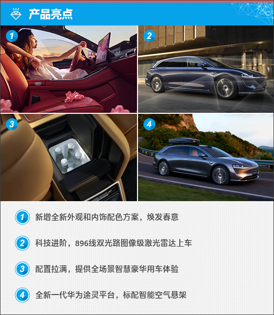新车搭载华为乾崑智驾ADS 4高阶版,配备896线双光路图像级激光雷达,采用双激光接收单元,实现长焦与广角的一体成像,兼具全局大视野与远端超清细节,分辨率提升4倍。针对低反射率目标,感知识别距离提升190%;面对异型障碍物,感知距离提升77%,更早识别风险,全程守护安心出行。