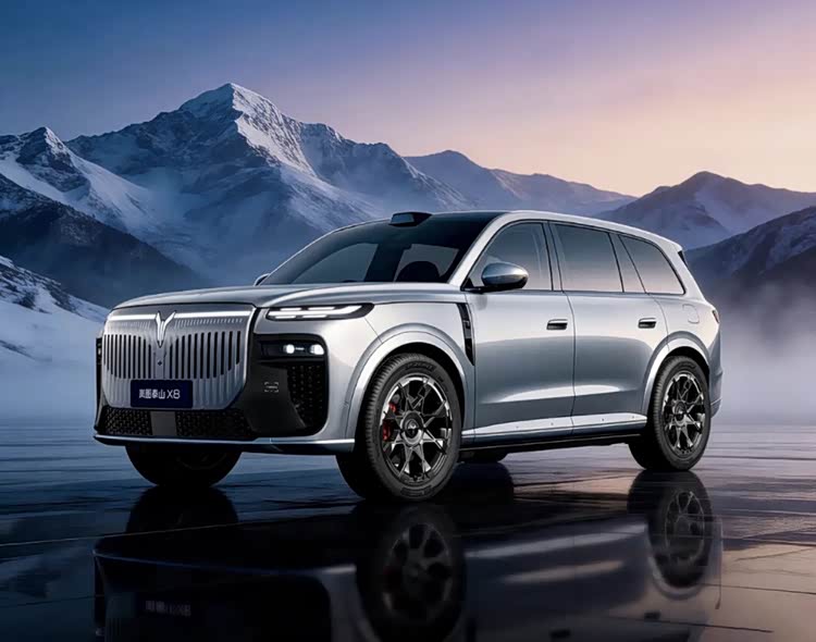 外观方面,岚图泰山X8采用“鲲鹏展翼”设计语言融合东方美学,整体造型大气恢弘,兼顾豪华感与运动气质。前脸配备扶摇直上式封闭式直瀑光瀑格栅,竖向饰条如瀑布垂落,中央镶嵌品牌LOGO,气场十足,搭配水击三千日行灯,以水为韵,点亮后辨识度拉满,前包围配备蜂窝状进气格栅与分体式灯组,进一步强化运动氛围。车身侧面线条流畅舒展,一条平缓的肩线从车头贯穿至车尾,搭配微微下沉的车顶轮廓,弱化了大型SUV的笨重感。此外,车身提供玄英黑、远山蓝等六款国风车色,契合高端用户审美。