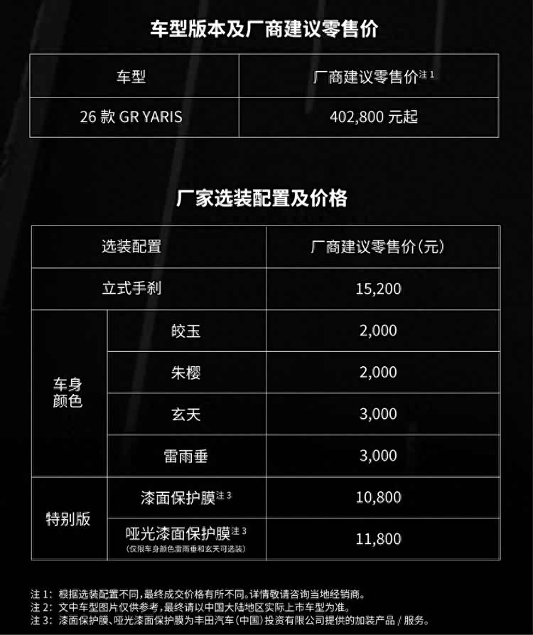 2026款丰田GR YARIS上市 操控提升 售40.28万元