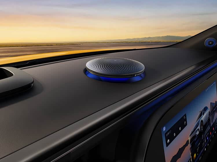 座舱核心采用全液晶仪表+中控+副驾一体式贯穿三联屏,科技感扑面而来。音响系统是一大亮点,新车搭载顶级7.1.4声道森海塞尔典范音响,并配备标志性的飞碟状悬浮式升降扬声器,配合车内近800处灯光点位与256色氛围灯,打造移动音乐厅般的沉浸式体验。