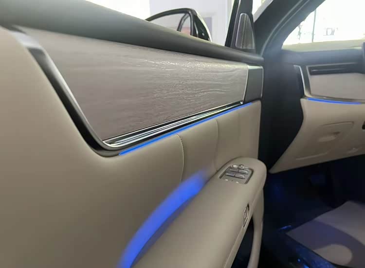华境S整车长宽高分别达到了5235*1999*1800毫米,轴距为3105毫米,已经称得上是个大块头了,车身轮廓舒展大气,采用传统样式门把手,前排和后排均是多层隔音玻璃,实拍车型配备的是21英寸大轮毂,车顶末端设有扰流板和高位刹车灯,贯穿式尾灯点亮后同样呈现出闪电⚡️状样式,与车头灯组做到了很好的呼应。