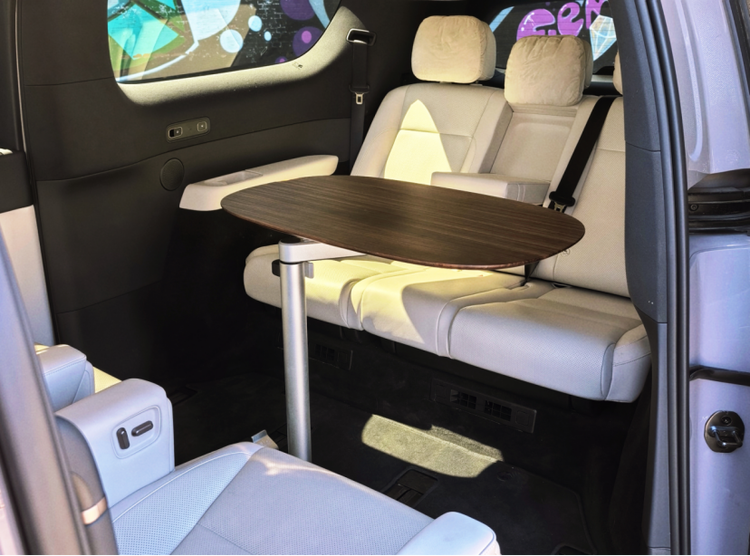 拿到的这台车是去年刚上新不久的Home版。中排座椅可以对转,放上随车配备的桌子,无论露营的时候车里玩儿把掼蛋,还是和要客开个临时会议,都不成问题。