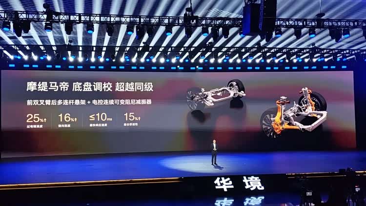 底盘架构部分,则是联合上汽大众、上汽通用同款供应商汇众,采用前双叉臂后五连杆+连续可变阻尼减振器组合: