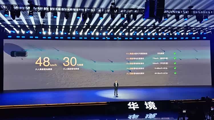 6人满载状态下,在低附着的雪地中进行30°坡度爬坡、48km/h麋鹿测试,能实现车轮稳抓地面不失控。