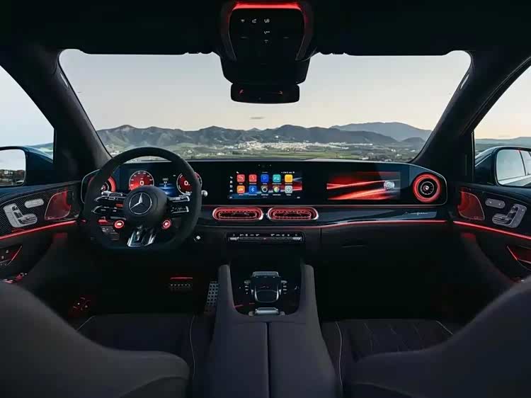 坐进车内,那才叫惊喜!核心就是这个MBUX Superscreen超联屏,12.3英寸仪表、14英寸中控、14英寸副驾屏,三块大屏连一起,科技感直接拉满。座椅用的是全新纹理材质,缝线特别精致,还带按摩功能,高配车型还有后排独立娱乐、多色氛围灯,不管是开车的还是坐车的,体验感直接拉满。车内到处都是软质包裹,再配上木纹或者金属饰板,奔驰的豪华做工那味儿一点没丢。至于AMG GLE 53 Hybrid,专属运动方向盘、金属换挡拨片、红色缝线加碳纤维饰板,运动感直接拉满,进一步凸显运动风格。