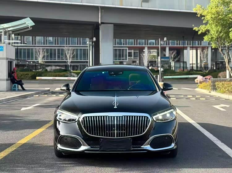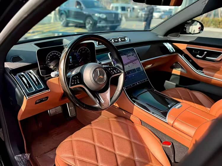 23年奔驰迈巴赫S480 ,曜岩 黑色外观/赭石棕内饰 配置:座椅通风加热按摩,主动氛围灯,抬头显示,柏林之声音响,黑钢琴烤漆面板,后排娱乐遮阳帘,电动开关门等