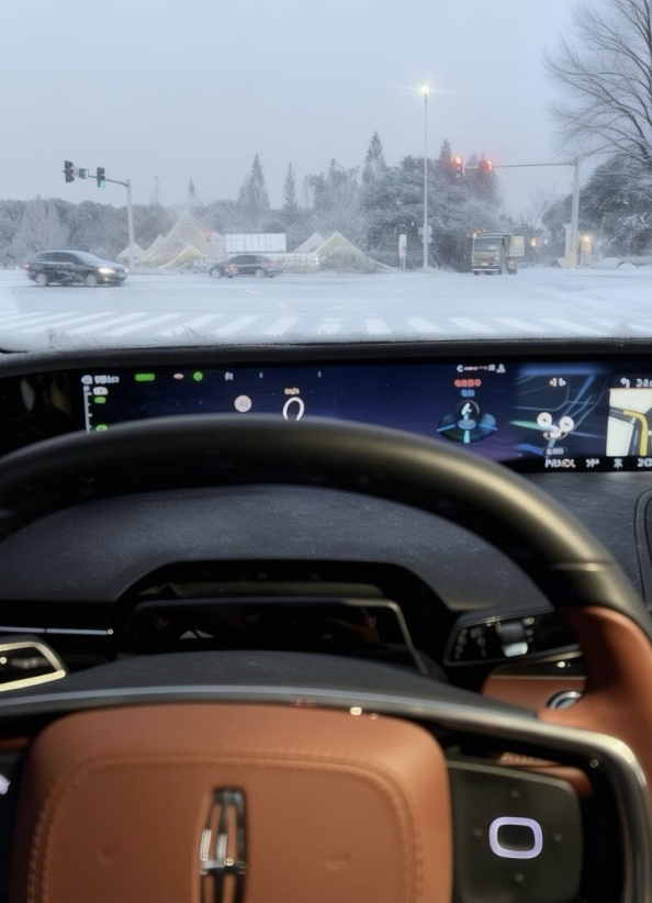 真正的考验是冰雪路况。 雾凇岭的盘山道,积雪压实后如镜面般光滑。纯电车大扭矩起步极易打滑失控,而林肯的电混四驱系统则表现出“如履平地”的稳健——毫秒级分配前后轮动力,电机精准的扭矩控制配合燃油引擎的持续输出,让车辆在过弯时稳如泰山。没有突兀的推背感,只有丝滑的抓地力,彻底消除了“一脚油门就甩尾”的恐惧。