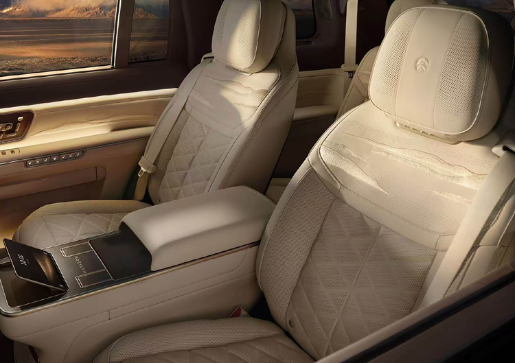 新车尺寸达到了5365/2029/1870mm,轴距3250mm,后排拥有“行政级”空间体验,后排独立座椅配备航空级小桌板,还有车载冰箱、后排吸顶屏、中置控制屏加持。蔚来ES9匹配900V高压平台,搭载前后双电机,前后电机最大功率分别是180kW、340kW,电池容量102kWh,CLTC纯电续航580km、600km、620km。