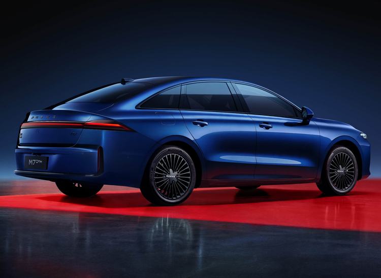 荣威M7 DMH是一款造型颇为酷炫的B级轿车,前脸风格让人联想到劳斯莱斯,现款车型指导价仅需9.78万起。新增的“黑马版”拥有专属定制车漆以及全新的黑色套件,从官图来看车辆配备了蓝色车漆配色,前中网、下包围、侧裙、轮毂、车窗外沿饰条均经过了熏黑处理。