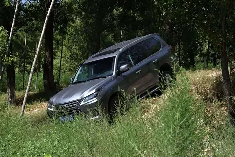 对于大多数情况,只需要把地盘升到最高,低速四驱挂上,打开差速锁,选择相对应的路面,这辆LX570几乎都能从容应对。只有一个轮胎抓地的交叉轴或者50多厘米深的炮弹坑也是如履平地。