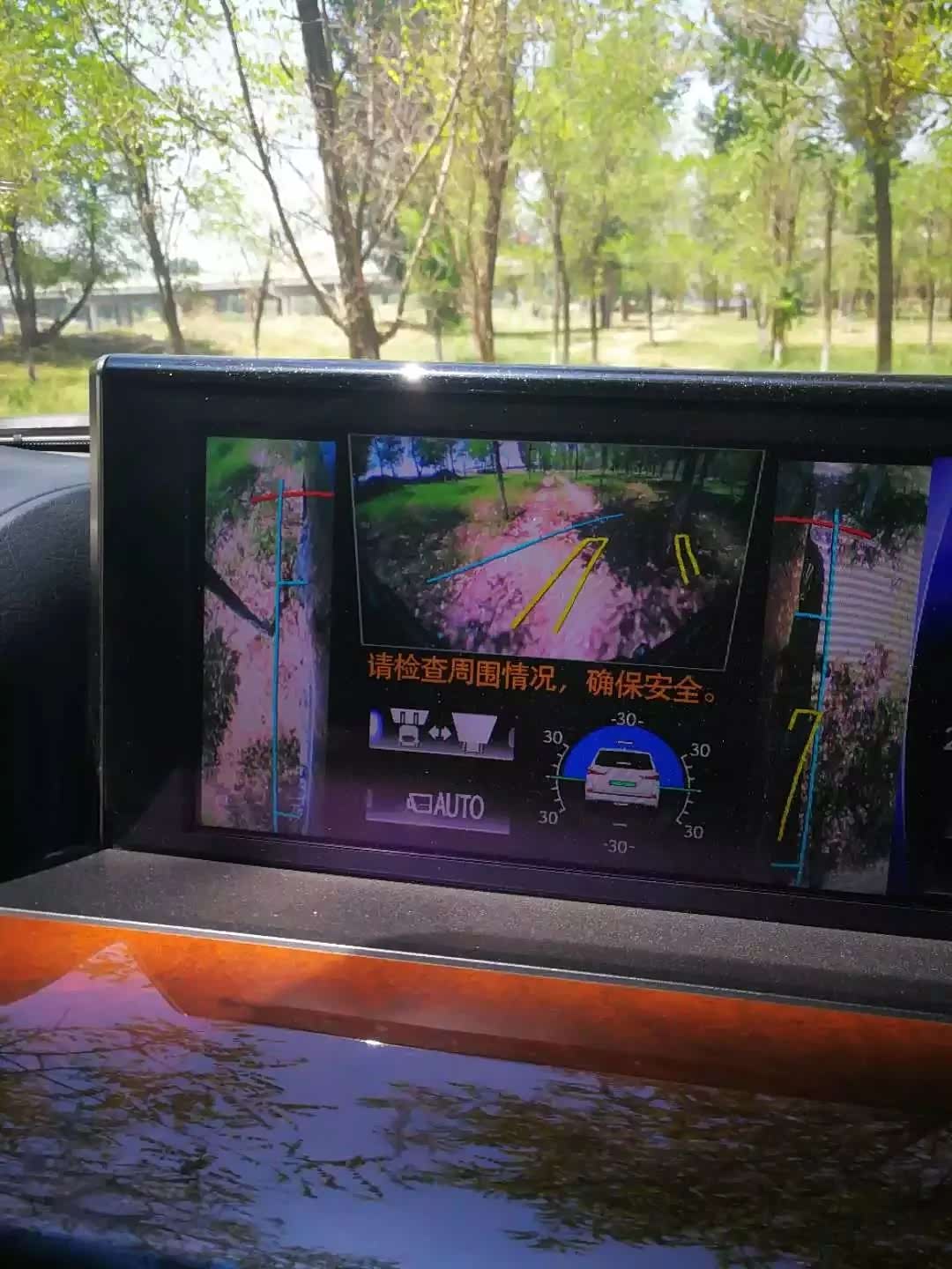 此外,在越野过程中,如果坡度较大,或者周围障碍物较多,中控大屏还会自动显示出前方视野,以及两侧轮毂视野。这在爬坡中无疑大大增加了安全感。
