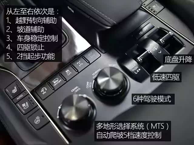 而这个鼠标后面的按键,则是LX570引以为傲的越野功能,在稍后会详细介绍。