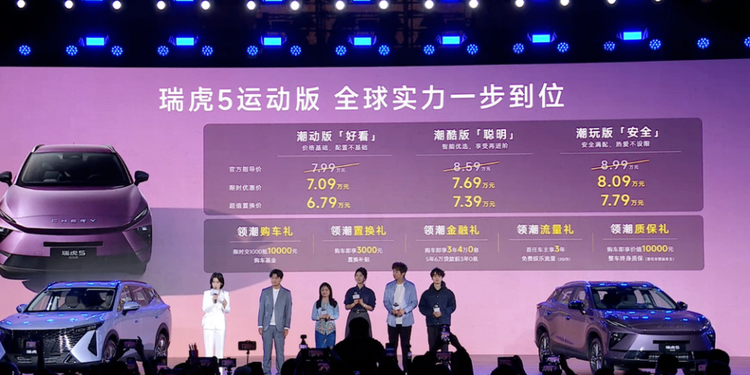4月8日,奇瑞瑞虎7L、新款瑞虎7、瑞虎5运动版三车上市,为年轻家庭带来10万内SUV的更优选。三款车型具体价格如下:瑞虎7L售价:8.59万元-10.69万元,限时优惠价:7.89万元-9.99万元,超级置换价:7.19万元-8.99万元。新款瑞虎7售价:7.99万元-9.19万元,限时优惠价:6.99万元-8.19万元。瑞虎5运动版售价:7.99万元-8.99万元,限时优惠价:7.09万元-8.09万元,超级置换价:6.79万元-7.79万元。瑞虎7L是瑞虎7家族的新成员,定位为一款紧凑型SUV;新款瑞虎7则是现款车型的改款车型,同样定位为紧凑型SUV;瑞虎5运动版将会是全新车型,也是紧凑型SUV。此前,奇瑞官方表示,未来瑞虎家族将保留5、7、8、9四大系列,5系定位潮流先锋;7系主打价值标杆,走性价比路线。