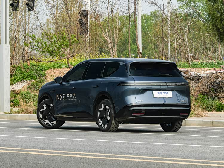 再看车侧和车尾,NX8是悬浮车顶的感觉,车身线条圆润流畅,从车头到车尾过渡得很自然,没有生硬的转折,再加上简约的车尾和贯穿式尾灯,整体看着很轻盈,停在小区里不会有太强的压迫感,平时在市区窄路穿梭也更灵活。值得一提的是,NX8的尾灯支持自定义灯语,可玩性更高。理想L6的车侧线条比较规矩,高车身搭配平直的车顶,就是为了最大化保证车内空间,车尾造型方正厚重,尾灯是分体式的,和前脸呼应,辨识度拉满,不过也正因为车身高,看着比NX8要笨重一点。两台车都使用了隐藏式门把手,现在大家对于这种门把手设计的吐槽比较多,美观度是有点,但是实用性一般。