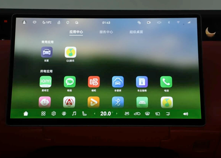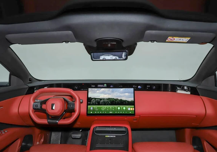 内饰部分,新车配备了35.4英寸4K一体远端屏,并搭配异形三辐式多功能方向盘,选配了电子外后视镜的车型还将配备双6.7英寸高清后视屏;新车中控台中间使用了悬浮式设计的15.6英寸智慧中控屏,整车标配鸿蒙座舱系统。此外,新车增加了前排中间气囊,顶棚材质更新为天鹅绒(顶配为超纤绒类麂皮)。