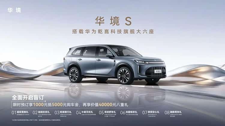 近日, 华境S(参数|询价)正式亮相并开启预订,作为上汽通用五菱和华为合作的首款车型,华境S定位大型SUV,搭载1.5T插混系统,CLTC纯电续航255km,全系标配华为乾崑智能解决方案,上市即支持城区领航辅助,将于今年上半年正式上市。