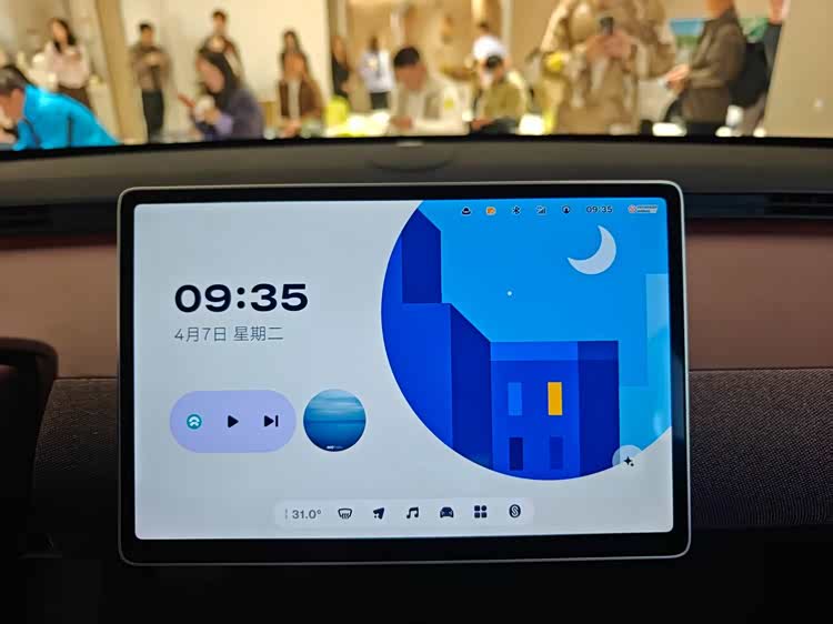 车机方面,主页极简又不失精致,情绪价值直接拉满,左侧的小胶囊可以切换为导航或音乐,而右侧的显示可以切换导航、车模、天气、时钟等等。