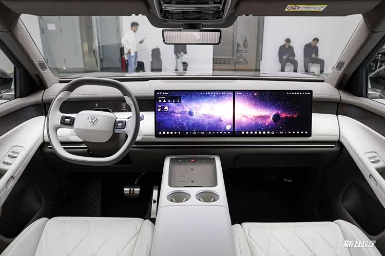 细节方面,上汽大众 ID. ERA 9X 仪表台上配备 15.6 英寸双联屏,后排则是配备 21.4 英寸吸顶屏。