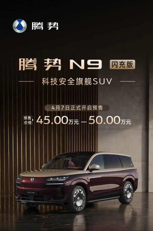 预售 45-50 万元 腾势 N9 闪充版预售开启