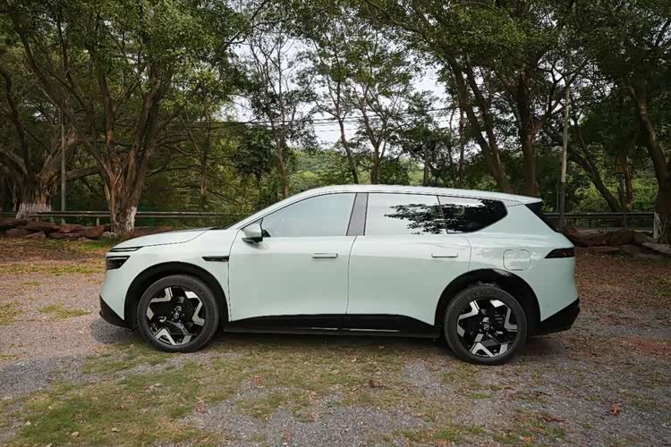 来到车身侧面,采用极简化一体式设计,隐藏式水切,低面差设计,侧面造型十分平滑。轮胎规格方面,提供19英寸和20英寸两种供用户选择。另外,增程动力车型位于车身右后侧的加油口。车身尺寸方面,新车的长宽高分别为4870/1920/1680mm,轴距为2917mm。