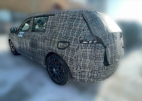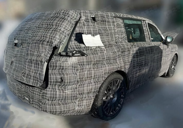 车身侧面配了大尺寸多辐轮毂,门把手是隐藏式的。车窗轮廓比较方正,整体看着很稳重,不像有些溜背SUV那么运动。车尾造型偏圆润,尾灯预计是扁平化设计,是不是贯穿式现在还看不出来。