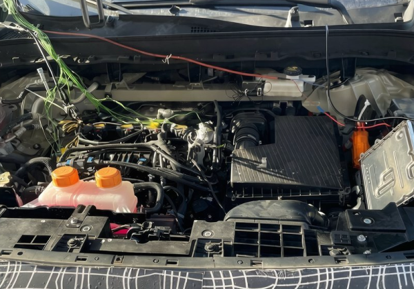 从谍照看,新车虽然裹着厚厚的伪装,但有几个细节挺有意思。机舱盖的尺寸确实很夸张,几乎覆盖了整个车头前缘,有点像那种复古肌肉车的设计。有消息说,这台车可能会用上阿维塔VISION XPECTRA概念车的设计语言,那个概念车的前脸就挺科幻的。车顶目前没看到激光雷达,不过也有可能是早期测试版本,高配车型应该不会缺席。