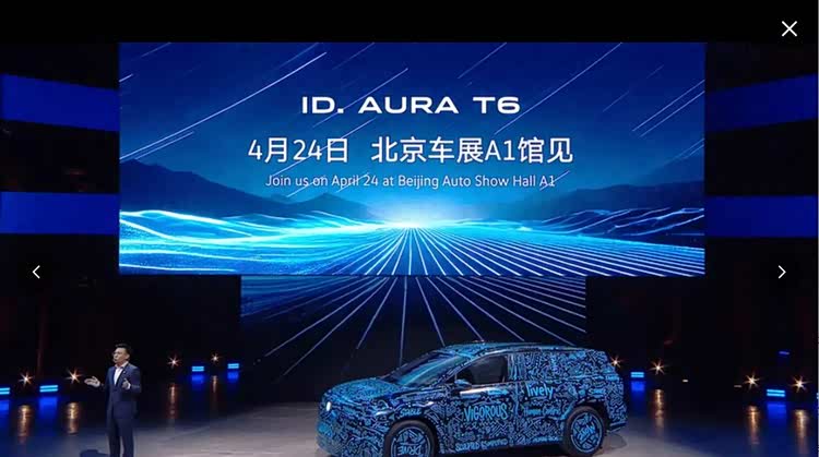 车家号·0浏览·2026-04-09 04:44 · 天津2026年4月8日大众品牌之夜发布全新车型 ID.AURA T6(参数|询价),新车基于由大众和小鹏双方联合开发的全新CEA电子电气架构打造的大型旗舰纯电SUV,预计将2026年4月21日大众集团之夜发布,24日北京车展对用户正式亮相,同年下半年上市。动力上,搭载单、双电机驱动系统。