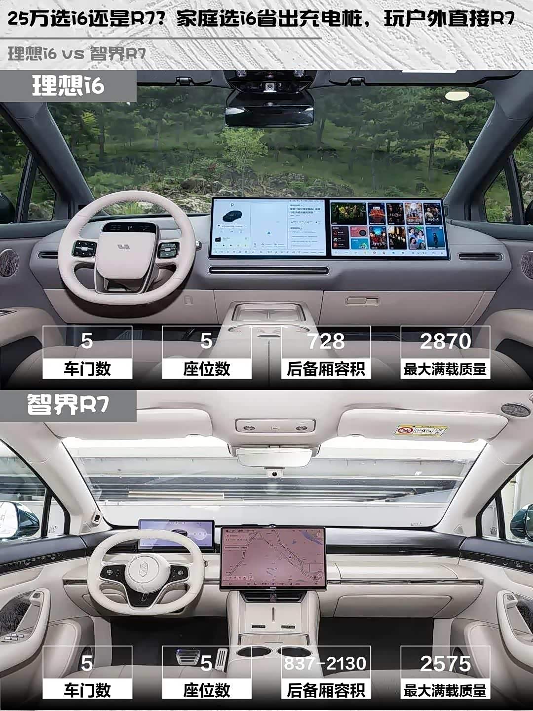 i6指导价24.98万,标配360影像+全速ACC,性价比突出💰。R7贵2万但多了激光雷达和鸿蒙生态,适合科技控。个人最终倾向i6,毕竟省下的钱够装家用充电桩了~ 你们会怎么选?