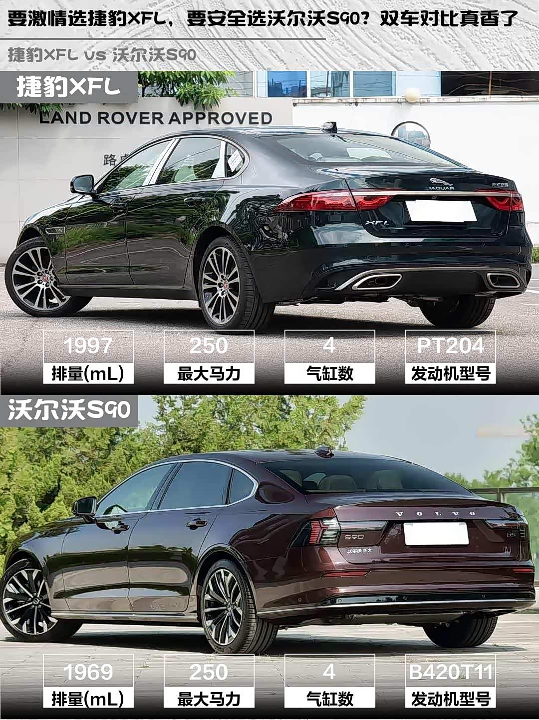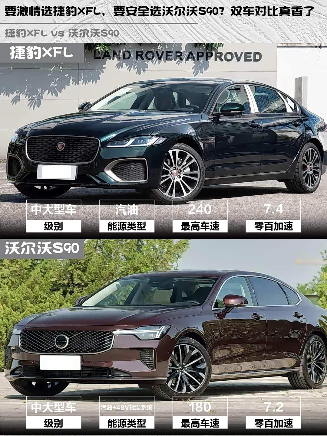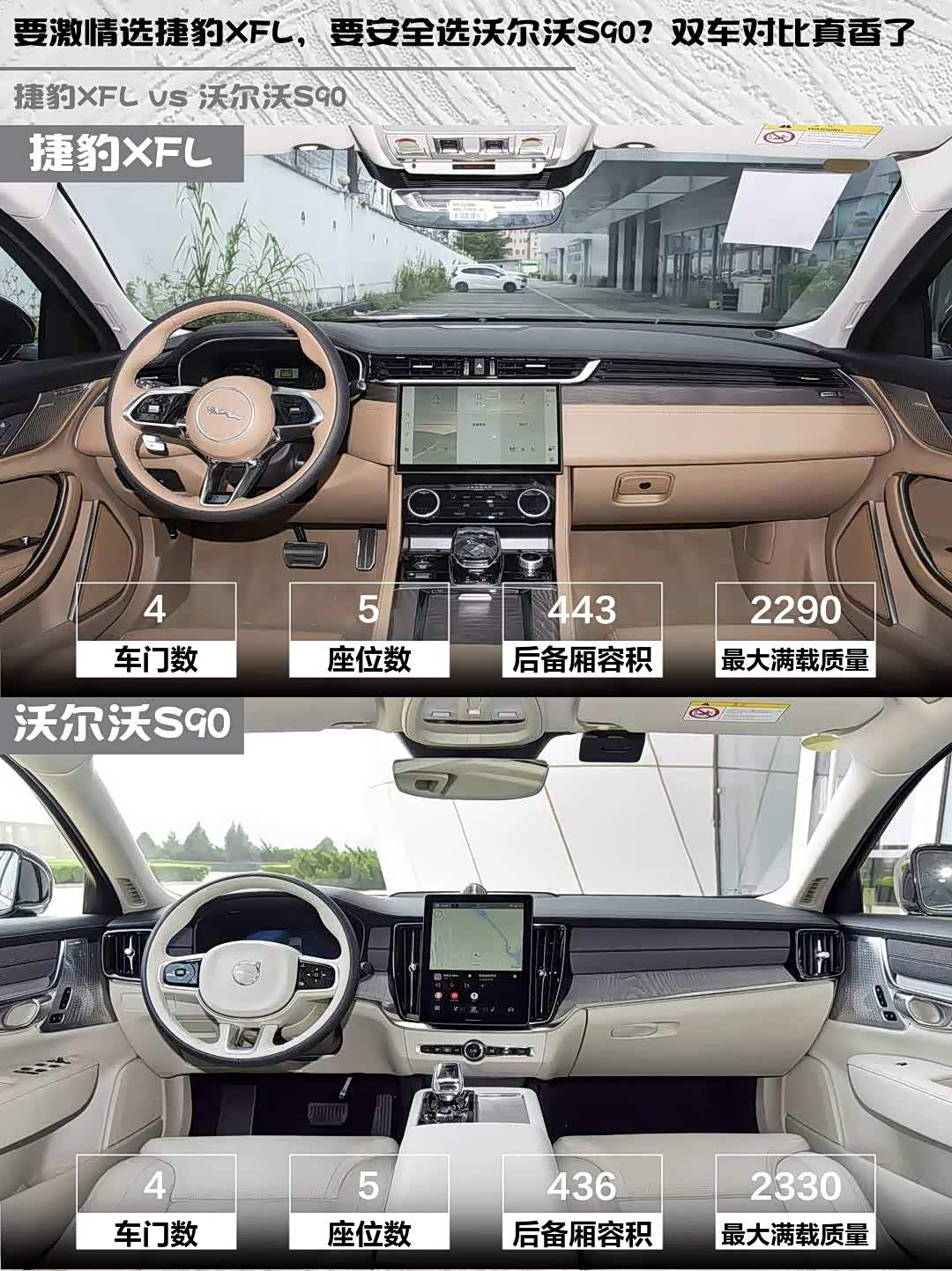 重点来了!捷豹XFL指导价43.99万,终端优惠后性价比爆棚,标配座椅加热/电尾门/L2辅助驾驶;沃尔沃S90指导价50.59万但有三不限公里质保,水晶挡把和空气净化系统是加分项。要我说,追求驾驶质感选捷豹,注重家庭安全选沃尔沃准没错~