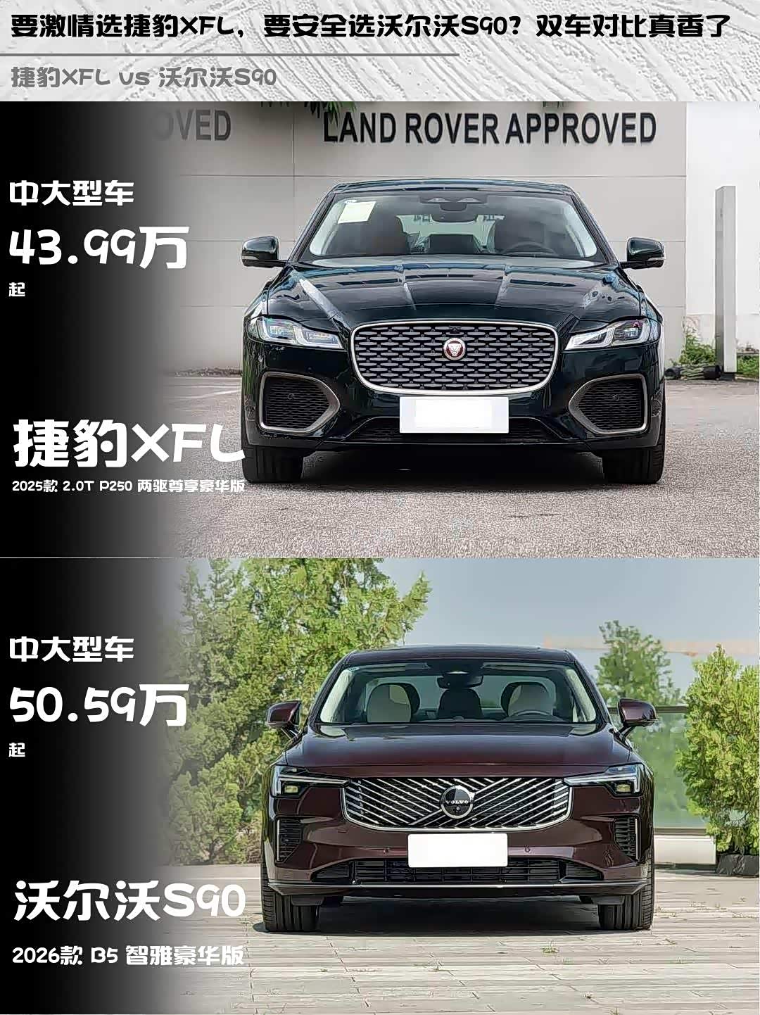 最近在纠结捷豹XFL 2025款 2.0T P250 两驱尊享豪华版和 沃尔沃S90(参数|询价) 2026款 B5 智雅豪华版的朋友看过来!作为深度体验过两台车的车主,掏心窝子分享真实对比感受👇
