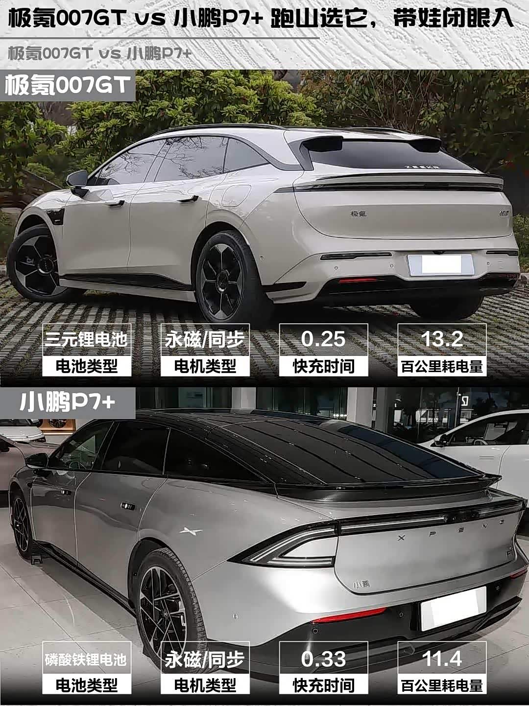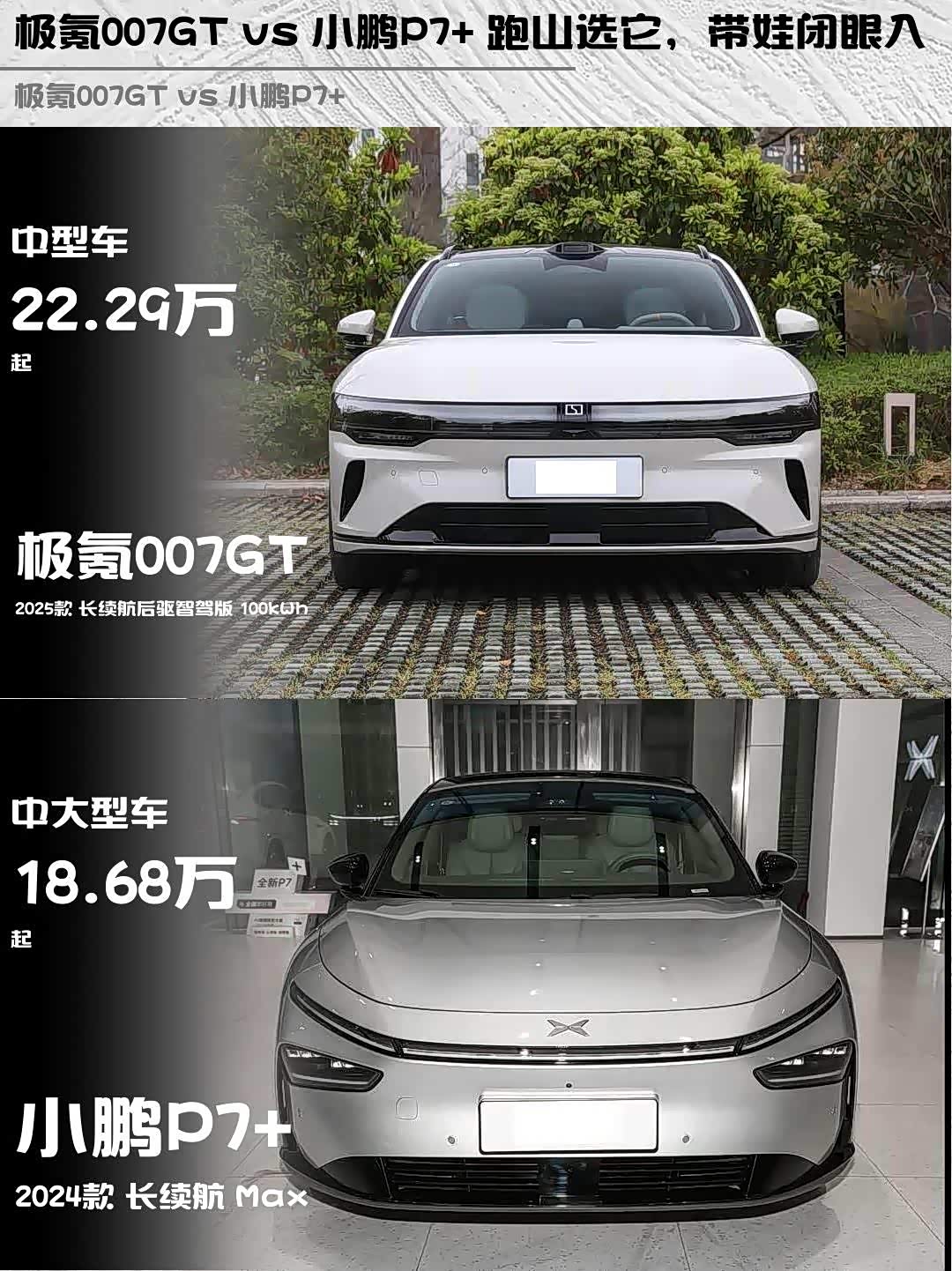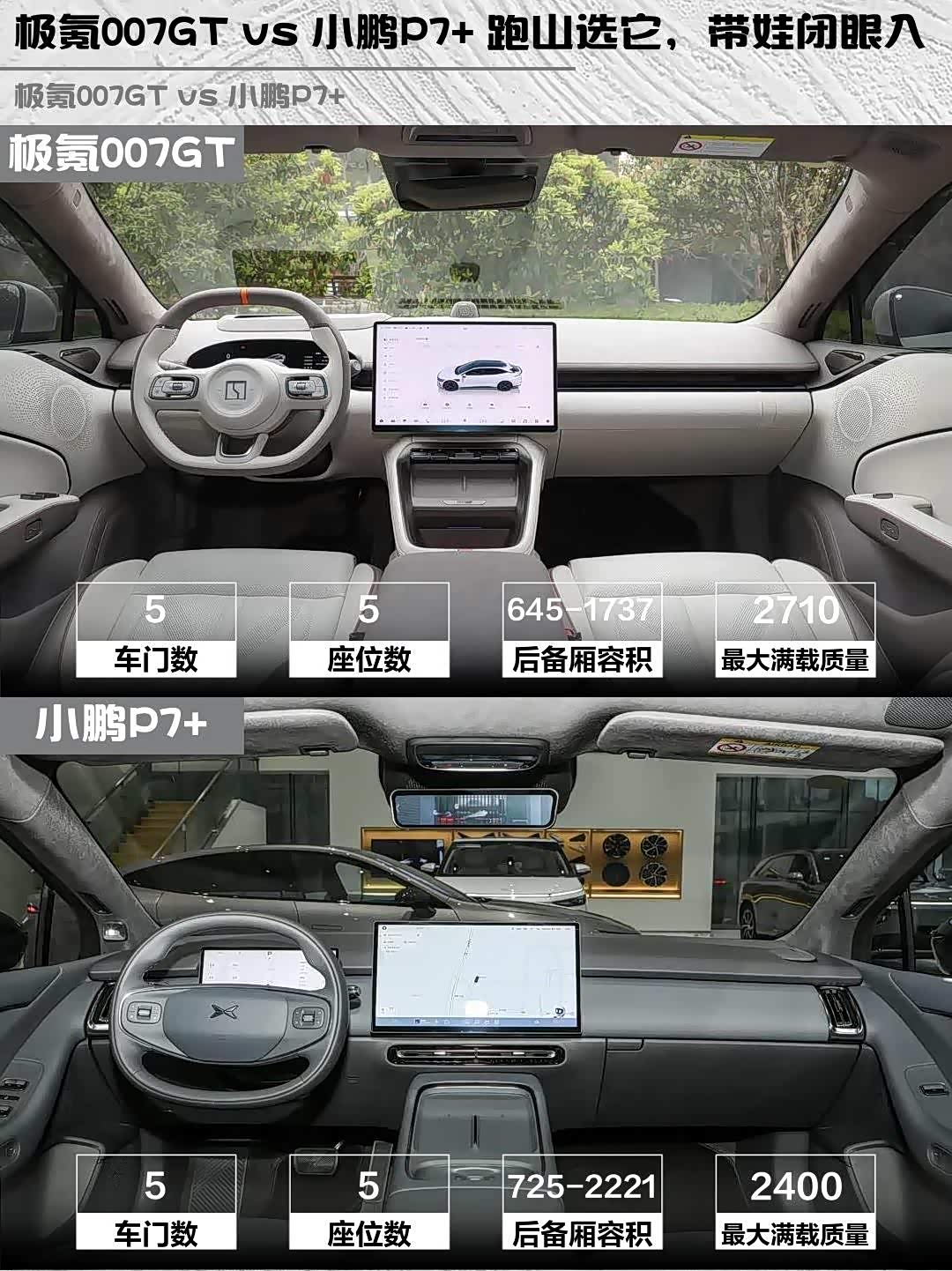 周末爱跑山/露营选极氪007GT,猎装造型+性能底盘真香!日常通勤带娃选小鹏P7+,智能座舱和空间更实用。你们更倾向哪台?评论区聊聊~