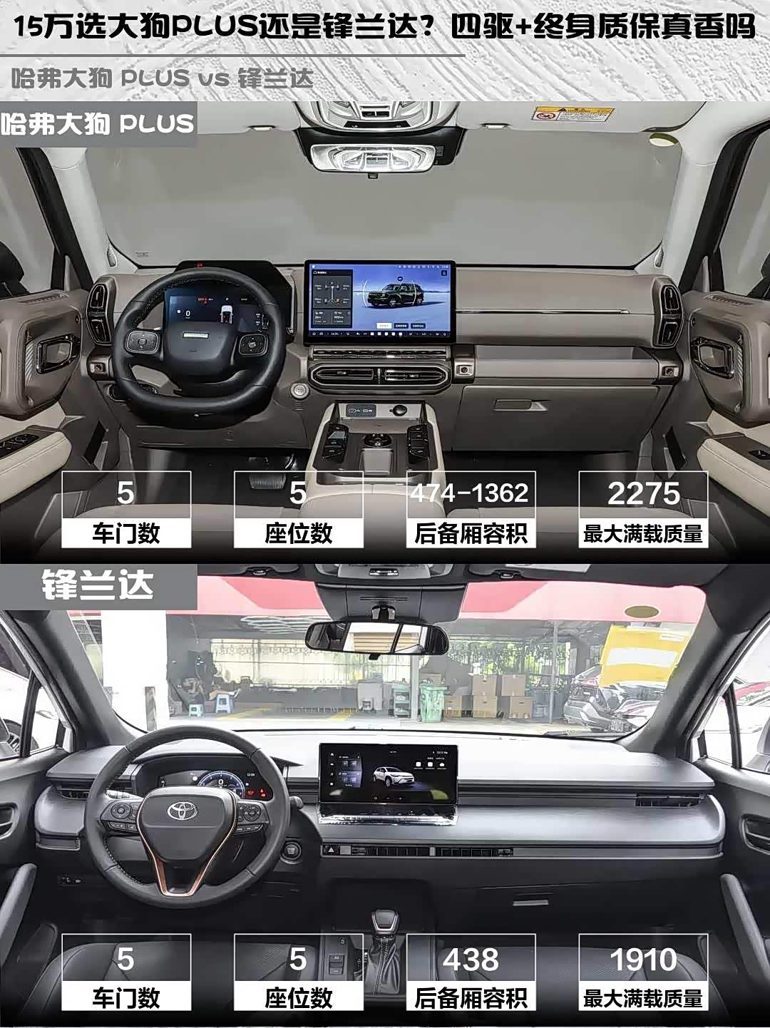 最后说价格:大狗PLUS指导价15.68万,终端有2万+优惠,还送终身质保;锋兰达13.28万起,保养便宜保值率高。要我说,喜欢野性自驾选大狗PLUS,配置拉满性价比高;纯城市代步图省心就锋兰达,油耗低好开灵活。你们会pick哪款?评论区聊聊~