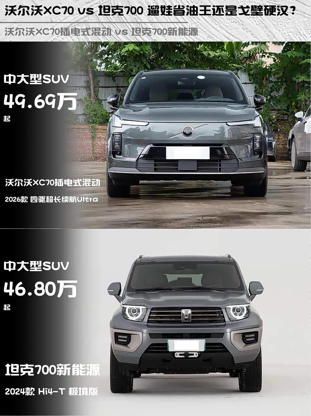 沃尔沃XC70 vs 坦克700 遛娃省油王还是戈壁硬汉?