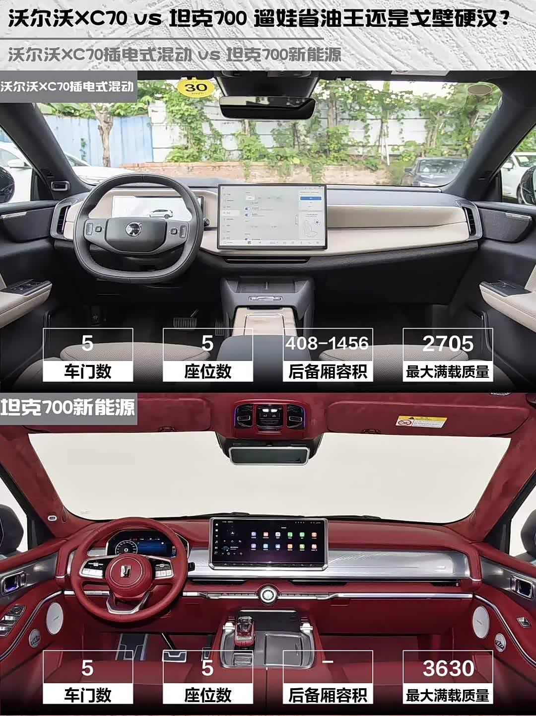 总结👉要豪华实用选沃尔沃XC70,要硬核越野选坦克700。我这种每天通勤+周末遛娃的,果断站沃尔沃了!你们会怎么选?