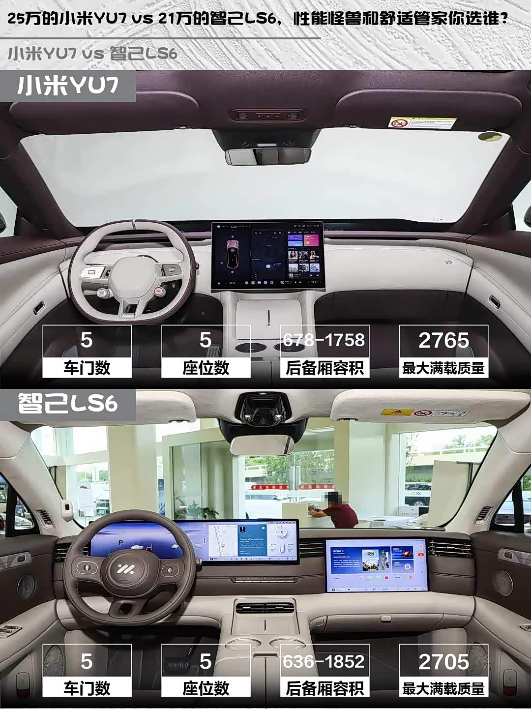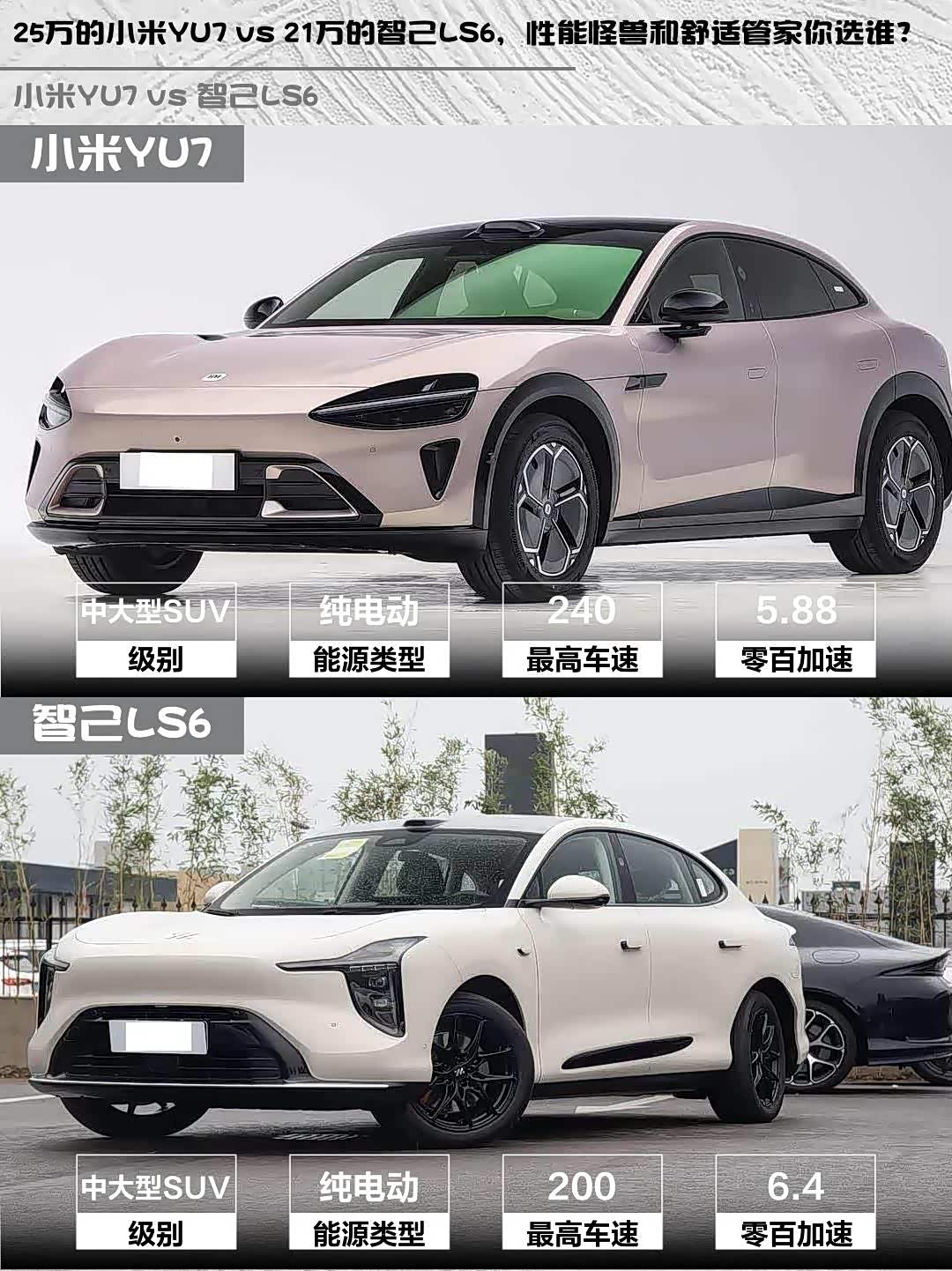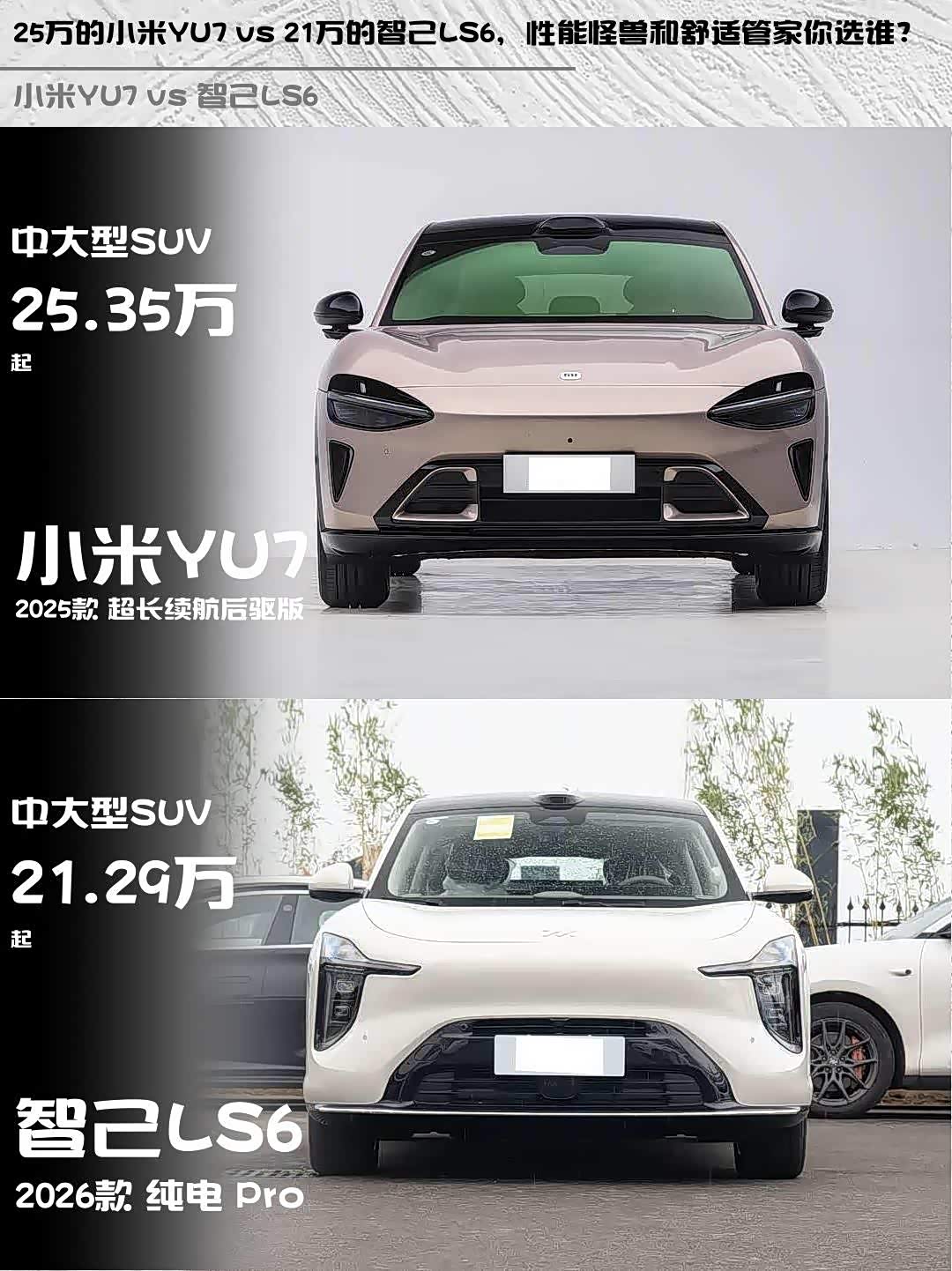 最近在选纯电SUV的朋友看过来! 小米YU7(参数|询价)和智己LS6这两款热门车型我都深度体验过,从性能党到家用党,一篇帮你理清谁更香~🚗✨
