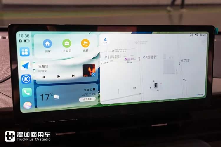 中控台配备12.3英寸中控大屏,采用乘用车级UI设计,支持华为HiCar全场景智慧互联,同时支持智能语音控车,按下方向盘语音键即可通过语音操作导航、音乐等,解放双手。