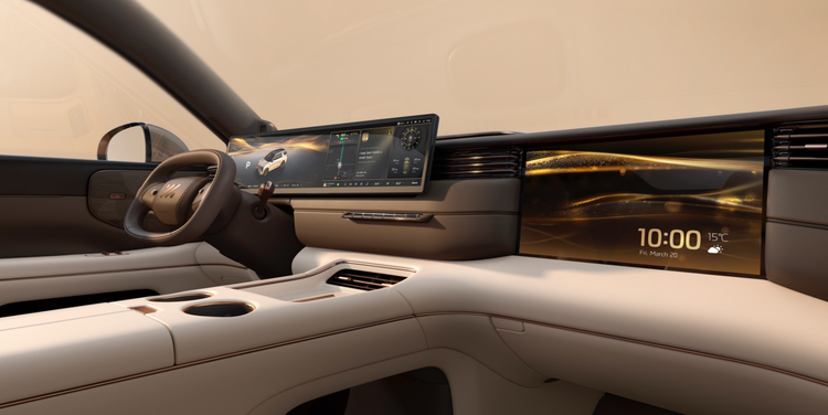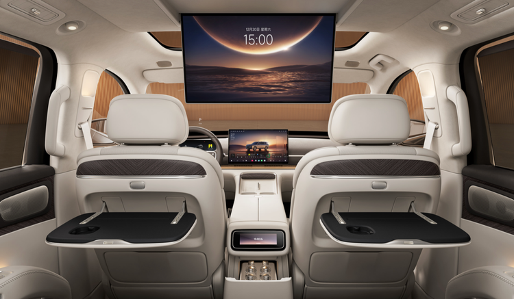 座舱方面,新车同样极具特色,配备了4D机械按摩座椅、地暖系统、21.5英寸后排娱乐屏、B&O音响等豪华配置。