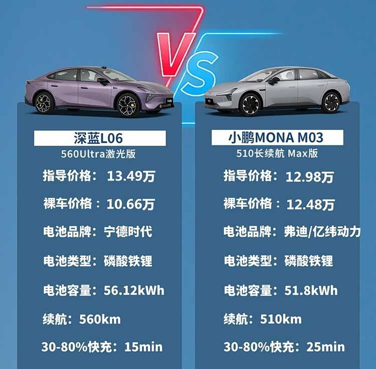 但是作为深蓝 L06的车主,我觉得是骡子是马,还得拉出来遛遛!今天咱们就拿深蓝L06和小鹏MONA M03来一个正面对比,看一看这两款车硬碰硬,到底会擦出怎样的火花!