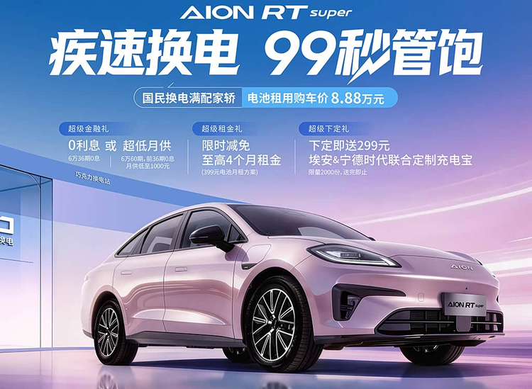 总的来说,埃安AION RT super的上市,填补了车系在换电领域的空白,8.88万的电池租用购车价,大幅降低了纯电车型的购车门槛,让更多家庭用户能接触到换电车型。它没有过度宣传自身的优势,也没有堆砌华丽的辞藻,无论是配置、动力还是补能方式,都围绕家用场景展开,兼顾了经济性、实用性和舒适性。对于注重出行成本和补能效率,同时又有家用需求的消费者来说,这款车无疑是一个值得考虑的选择,不用为了某一项优势妥协,也能获得均衡的使用体验。