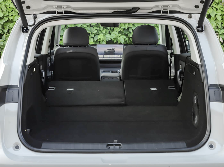 车身尺寸方面,零跑C10拥有4739mm的车长,2825mm的轴距,比三排座布局的捷途山海L7轴距还要长出5mm。车尾最值得讨论的是后备箱,容积虽然只有370L,但是放倒前后两排座椅之后,地台平坦,纵深可达2米7左右,长途远游一家三口躺在车里,透过全景天幕看星星,相当放松惬意。