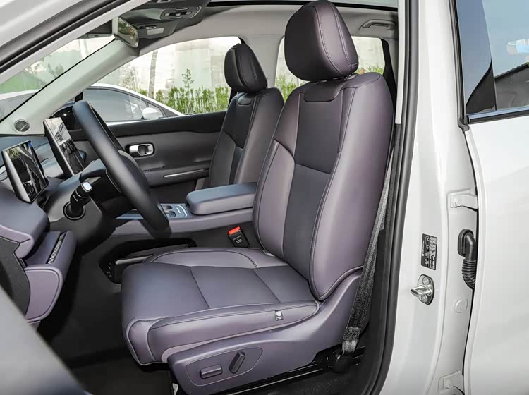 坐进前排,除了方向盘和两款屏幕,并没有给过多的实体按键,全系都可以加装1万元的全配套装。里面包含了车外灯光智慧灯语、20英寸三叉戟轮圈等车外配置升级,也包含车内氛围灯、空气净化和前排座椅加热通风、方向盘加热等功能。从性价比方面来讨论,这1万块加的还是相当有性价比。升级之后,座椅采用母婴级的有机硅材料,通过国际OEKO-TEX® 认证,抗菌耐磨,有点污渍一擦就干净。