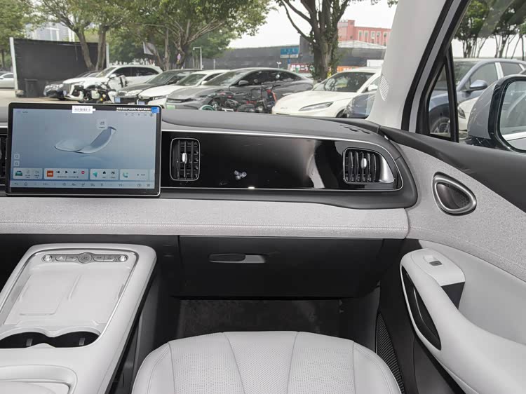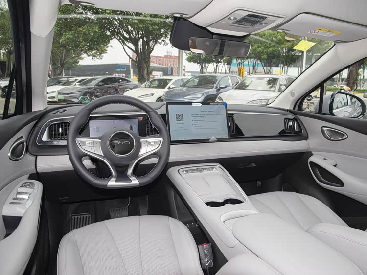 内饰部分,新款海狮05并没有进行大刀阔斧的改动,而是延续了现款海狮05 EV的整体设计,环抱式海洋律动座舱依旧是核心设计亮点,能给驾乘人员带来不错的包裹感。车内最显眼的依旧是自适应可旋转中控屏,这一配置已经成为比亚迪车型的标志性设计,实用性和科技感都比较不错。值得一提的是,新车保留了常用的实体按键,并没有为了追求简约而取消,日常操作起来更加便捷,不用频繁在屏幕上寻找功能。同时,新车还引入了怀挡设计,这一设计不仅节省了中控台的空间,也让操作变得更加顺手,中控台下方预留的无线充电面板,也能满足当下消费者的日常使用需求,细节处的考量比较周到。